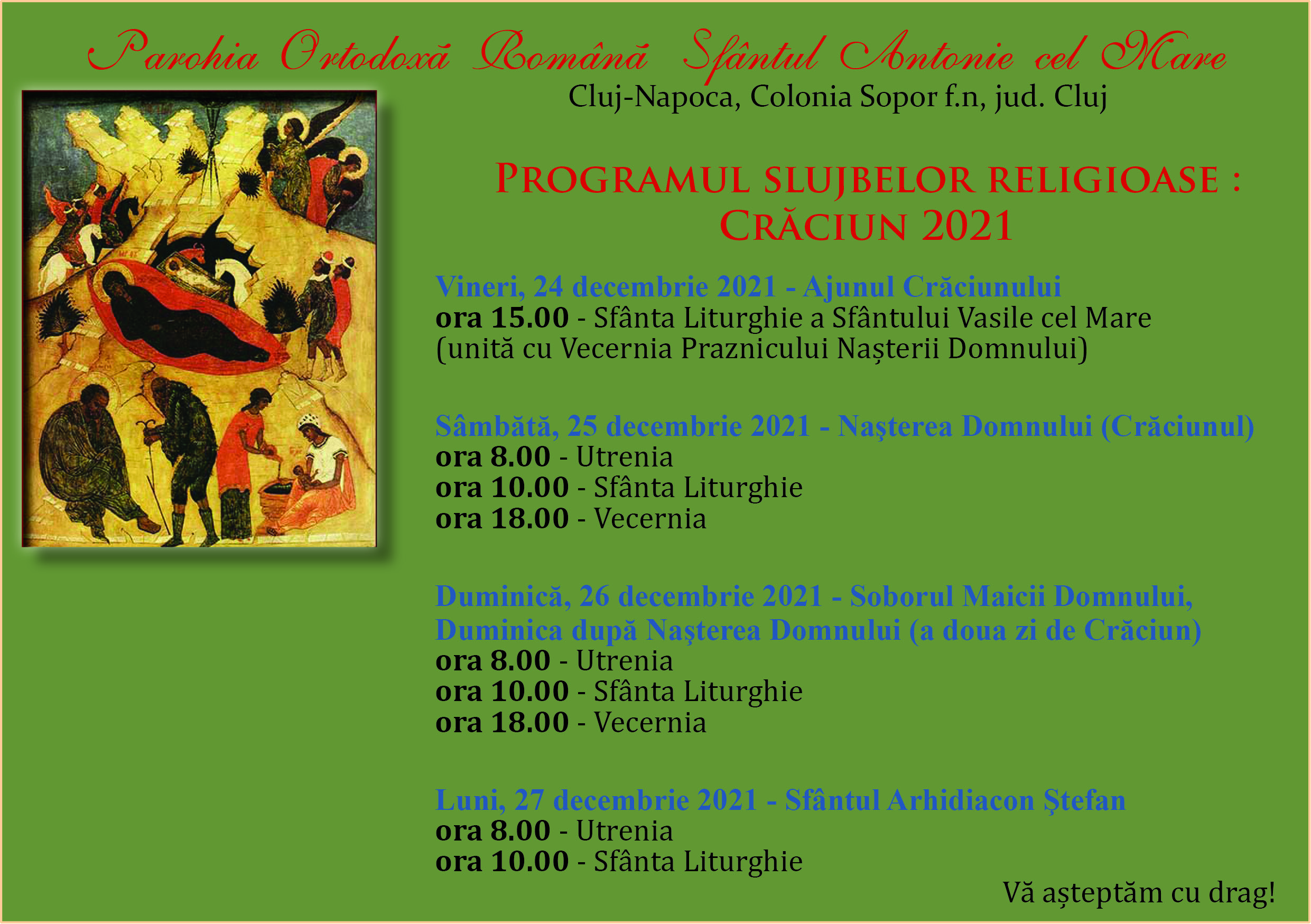 Sâmbătă, 25 decembrie 2021 - Naşterea Domnului (Crăciunul)