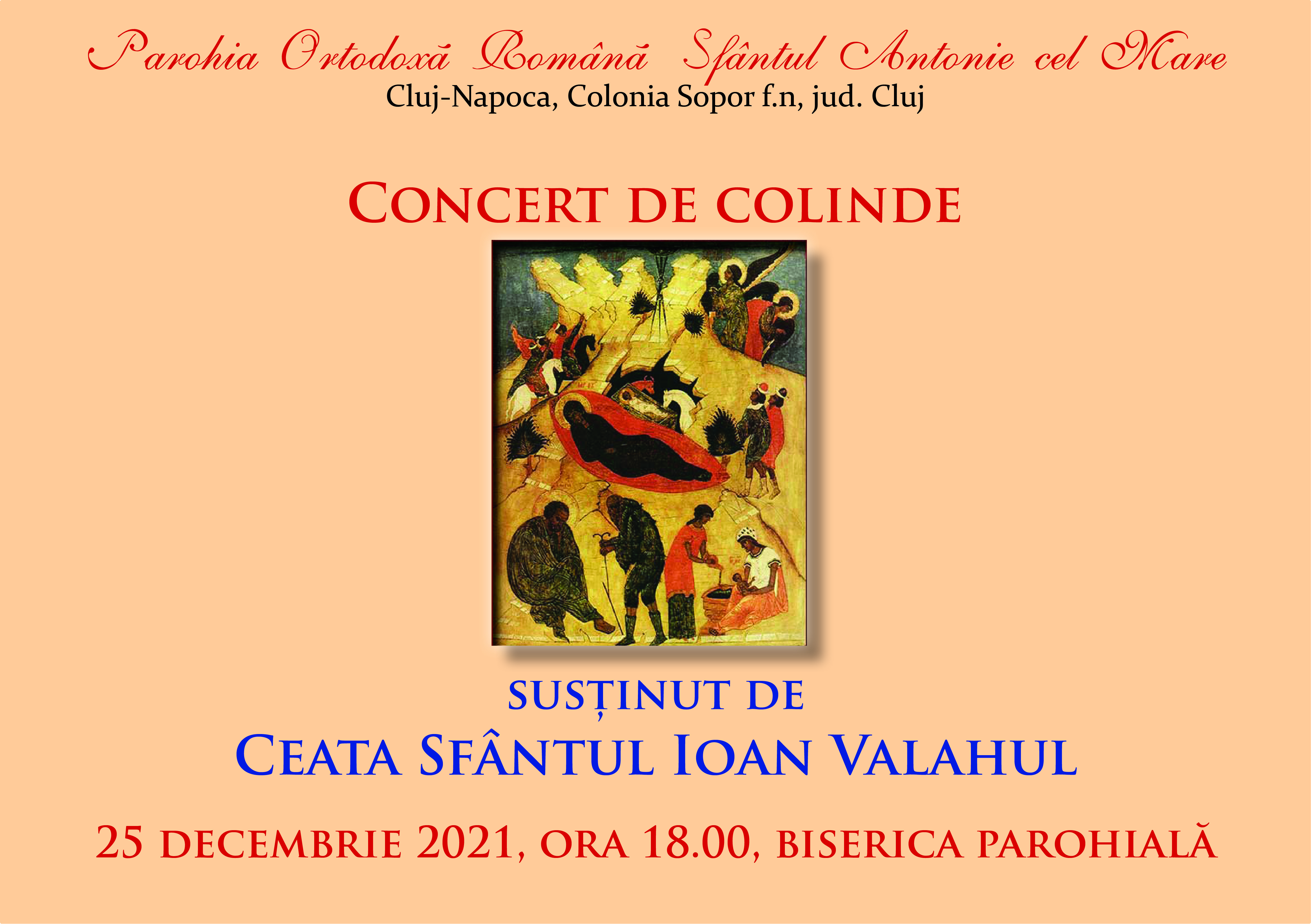 Evenimentul va avea loc în biserica parohială în data de 25 decembrie 2021, ora 18.00.